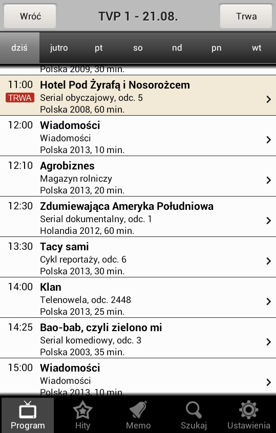 Ściągnij darmową aplikację na telefon aby mieć program telewizyjny wszystkich stacji o bierzącej godzinie bez konieczności odejmiwania lub dodawania godzin do lokalnej strefy czasowej w Twoim miejscu zamieszkania.